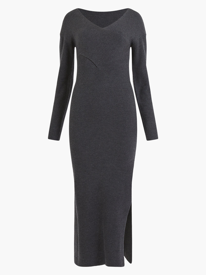 Lydia Knit Bardot Maxi Dress Charcoal Melange French Connection Uk